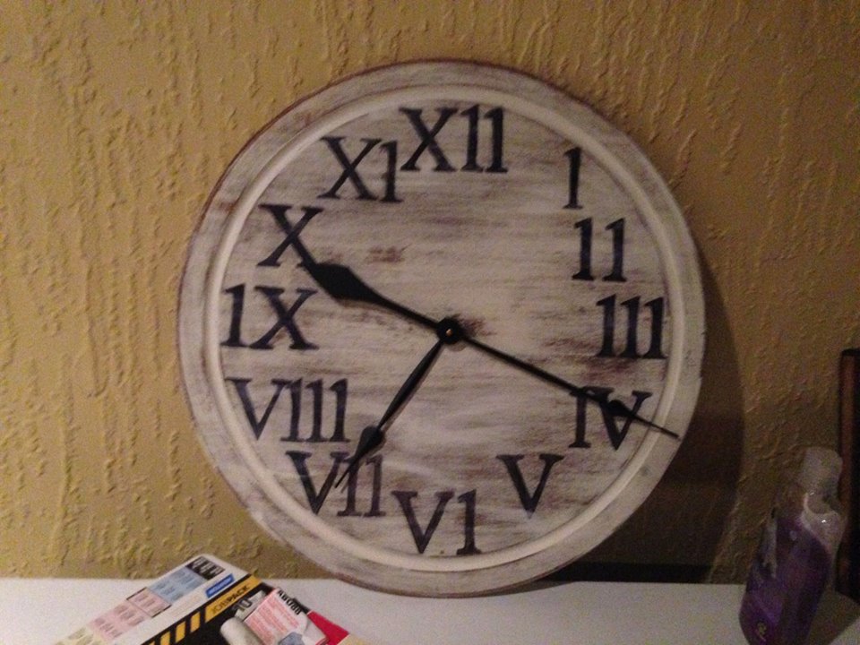 I saw a clock in Ballard Designs that I loved and wanted for our back patio. $300…… I don’t think so. I found a wooden lazy Susan at the weigh and pay for $3.00. A little creativity and poof I have a clock.