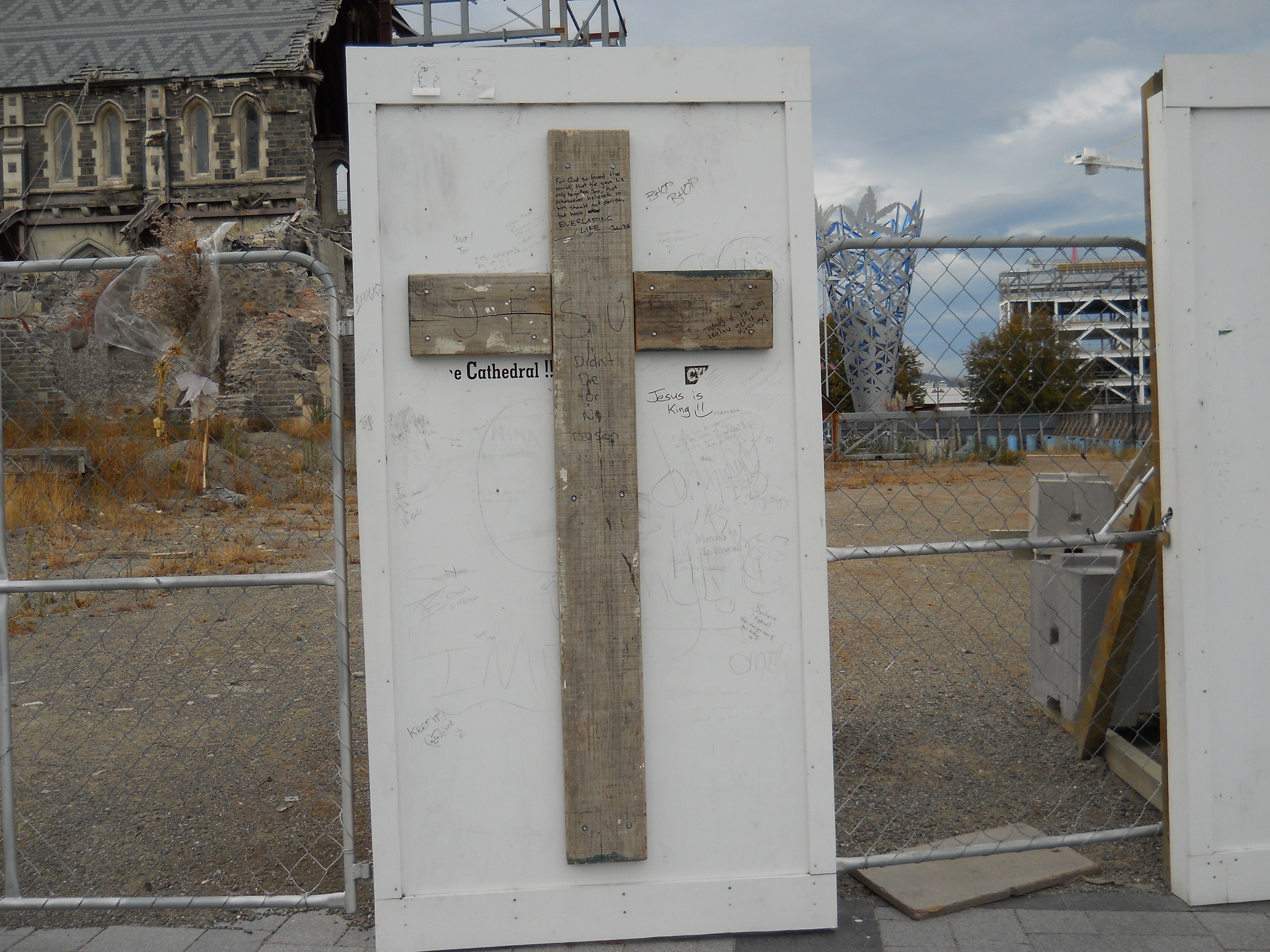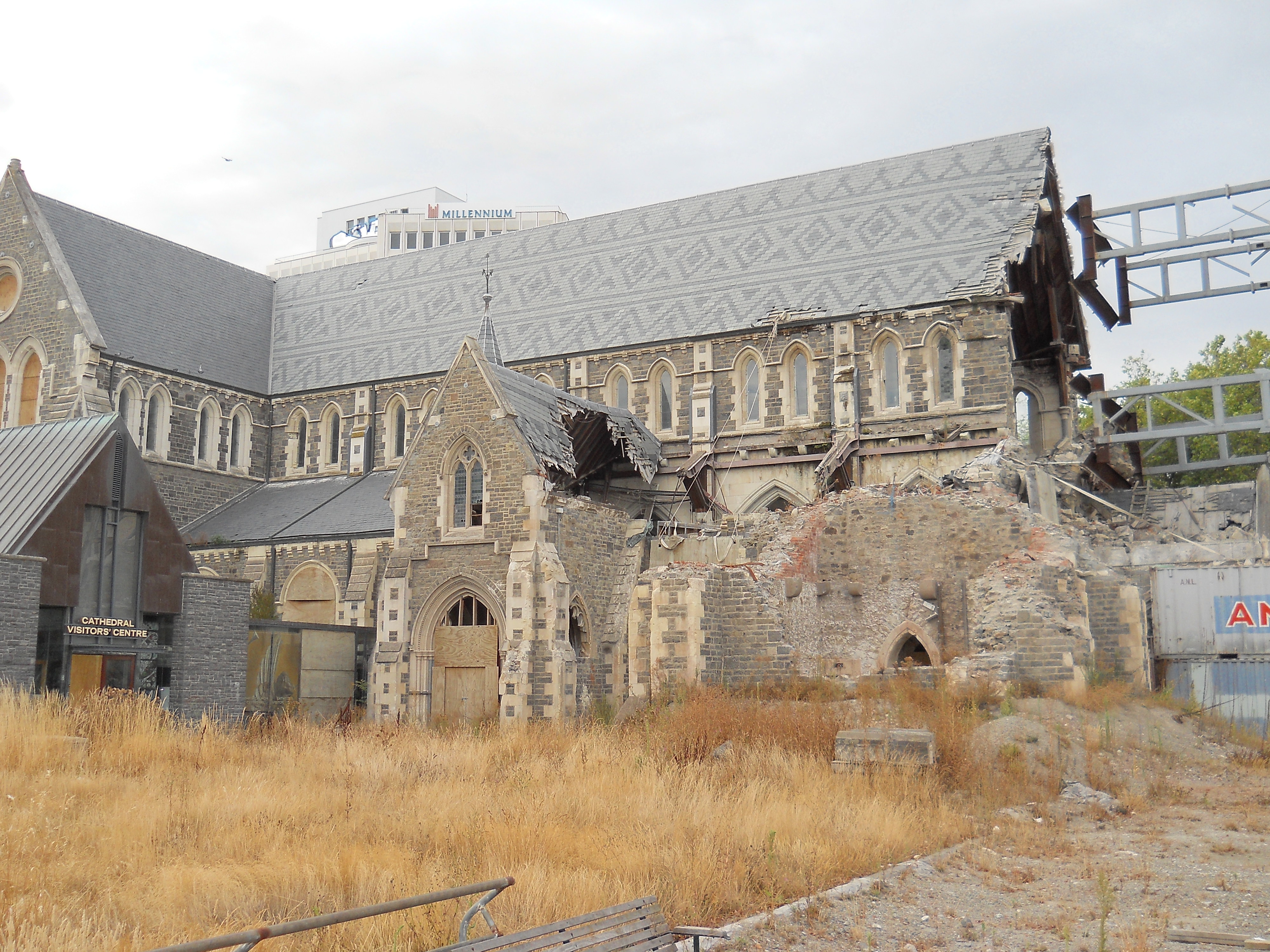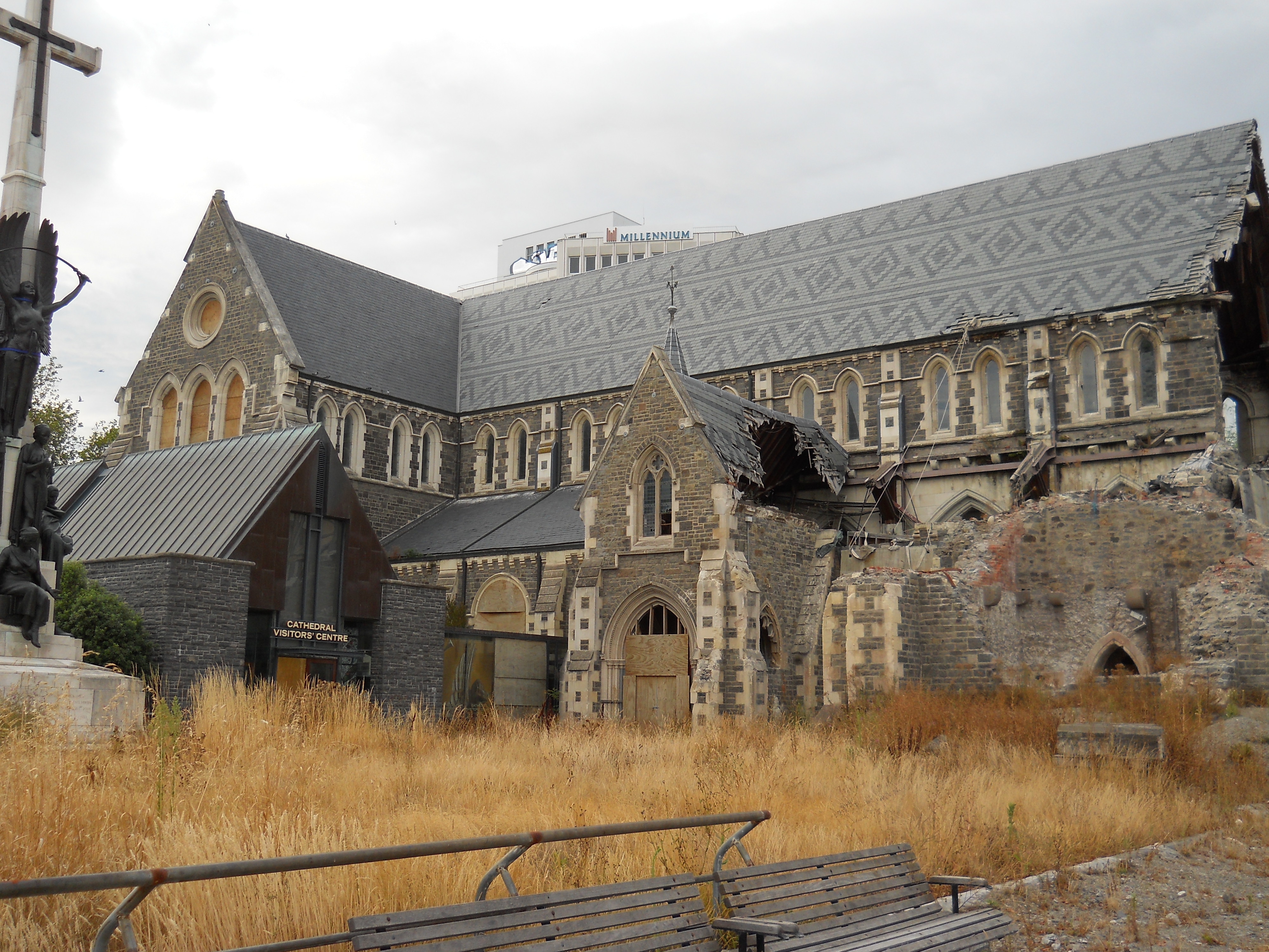 The Christchurch Cathedral was severely damaged in the earthquake. They constructed a temporary cathedral just a short walk down the street called the “Cardboard cathedral”