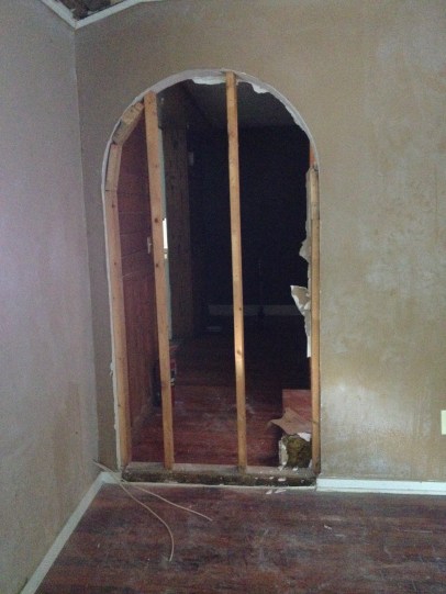 so the surprise hole in the wall was an original opening from the “big house.” The “little house” is an addition that we are unsure of the original date. The “Big House” however was built in 1903.We will continue with demolition through this weekend. It will include removing all the drywall, pulling down the ceiling tiles, removing an old closet, expanding a closet in the bedroom, completely gutting the bathroom (wow aren’t you surprised after the pictures?) and probably much more.