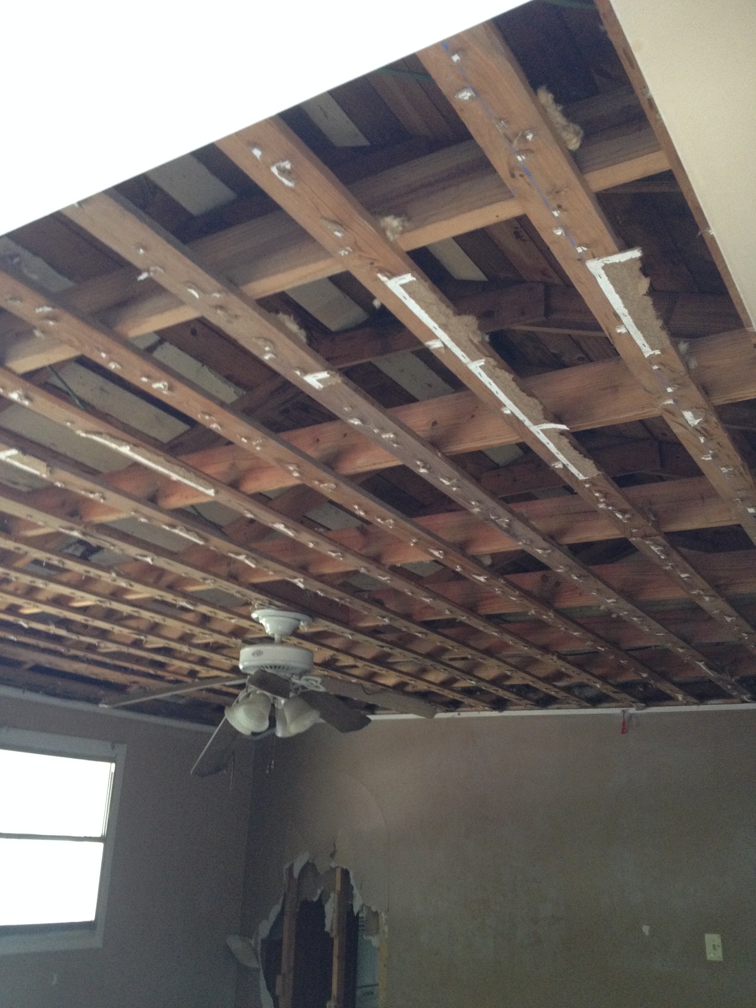 the tiles have been removed and Mom has been pulling staples. She counted a gazillion. I have special plans for this cute ceiling.