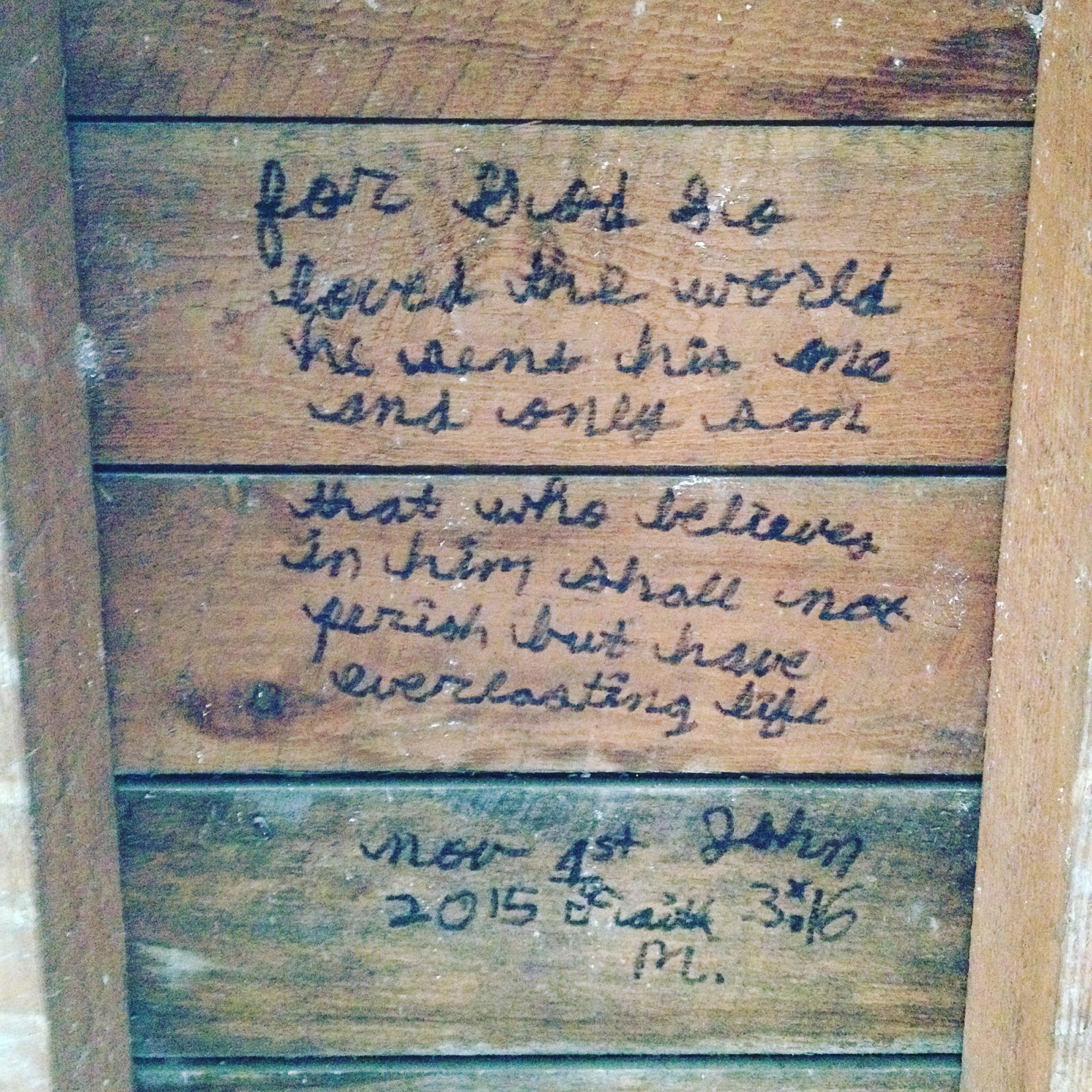 I asked her if she wanted to be the first person to write on our walls. Blessings if you need a title. She said YES!!! I asked her if she had a favorite bible verse. She said YES!!! I asked her if she knew it from memory, she said YES!!! Find me a sharpie, quick.