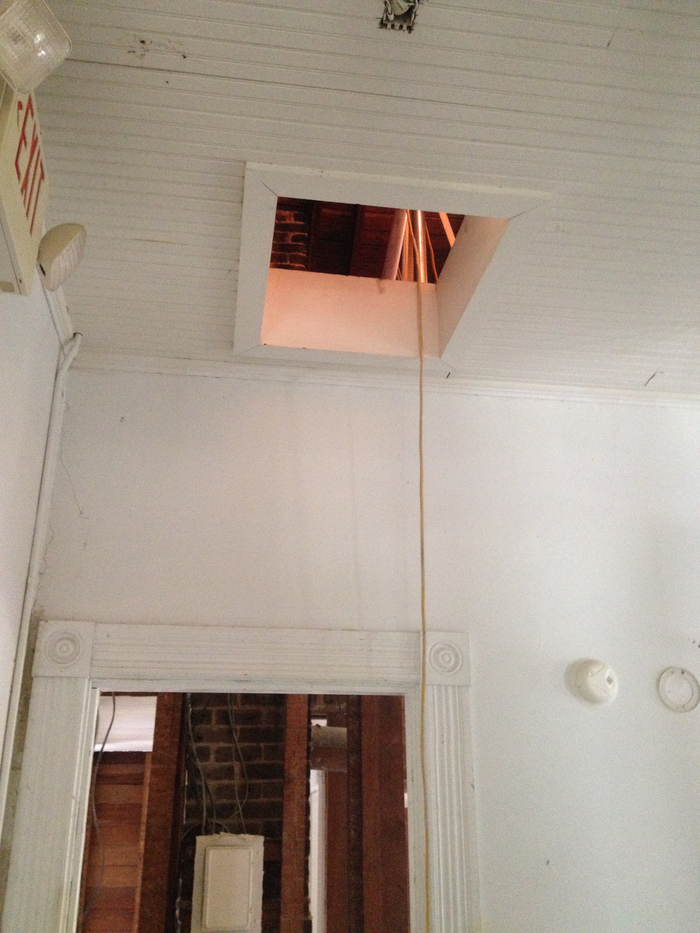 Well………this is the reason. see that hole in the ceiling. Thats currently the only entrance into the attic. oh boy.