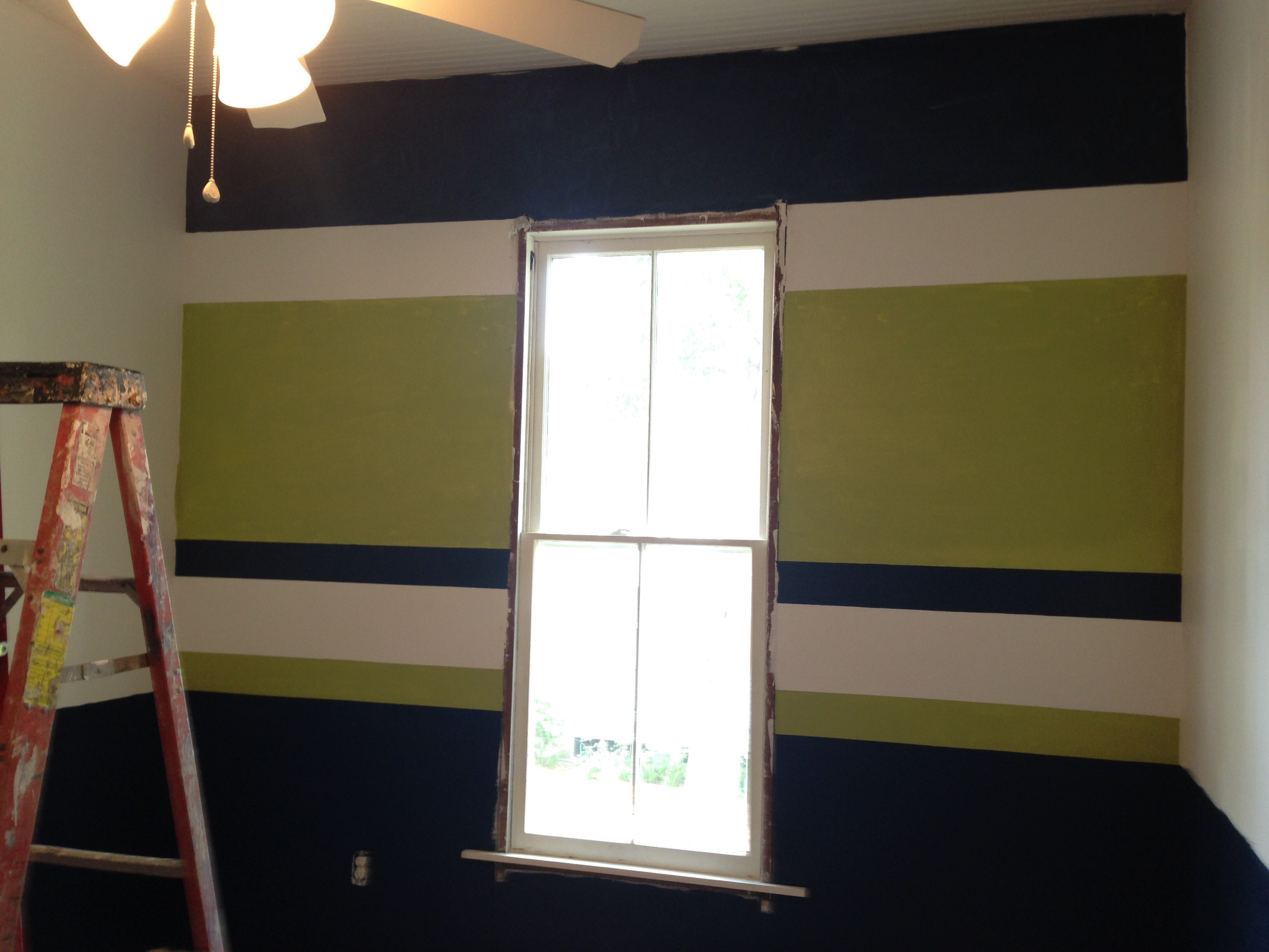 Have you seen the progress in Jacks room? The stripes are completed. The floor is painted. Baseboards has been installed. Door trim is up and everything is moving forward.