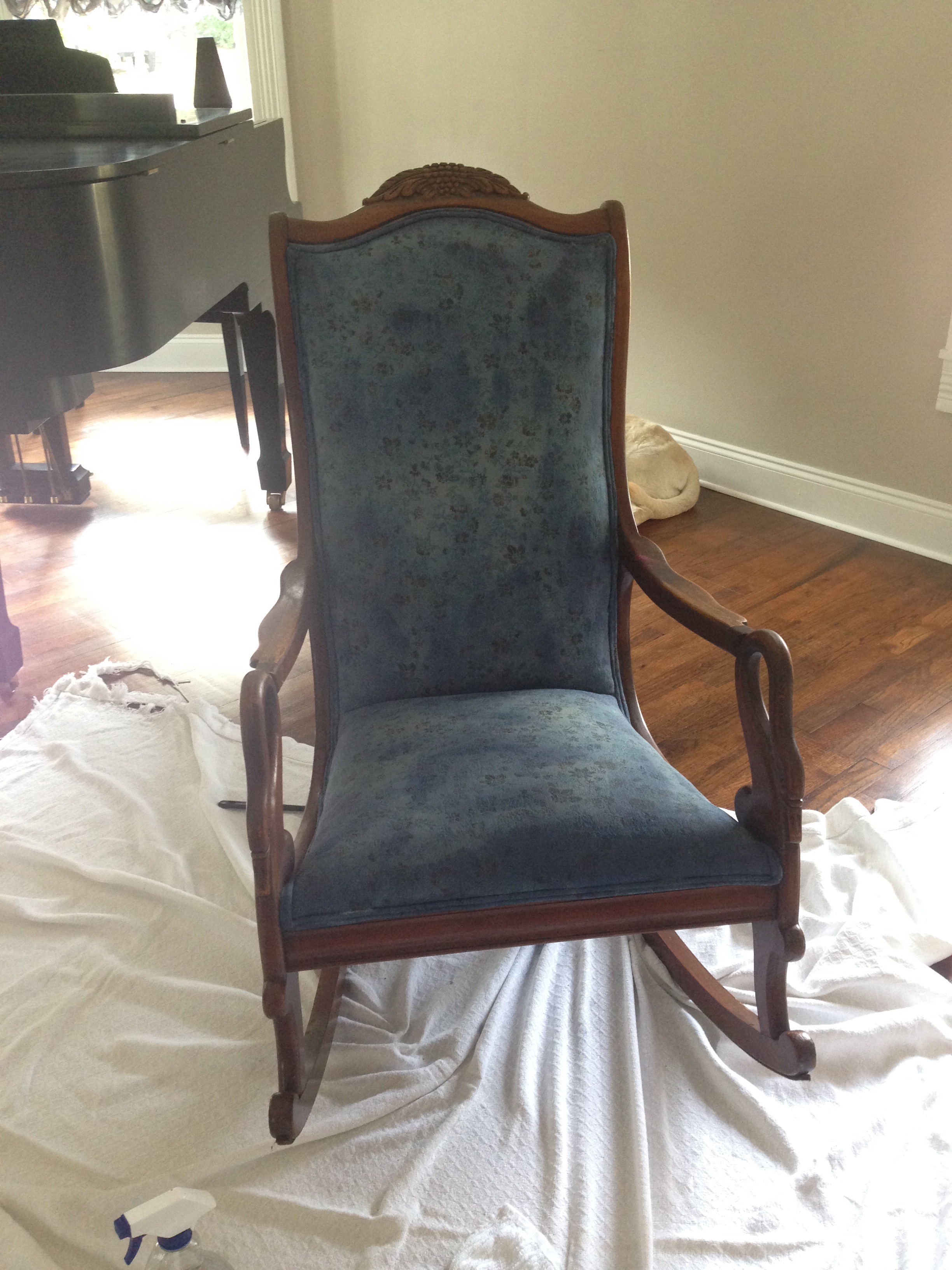 My sweet friend called me over a year ago and said his mom was getting rid of this rocking chair. It went way back in the family but there was no room for it. Did I want it? Yes of course.