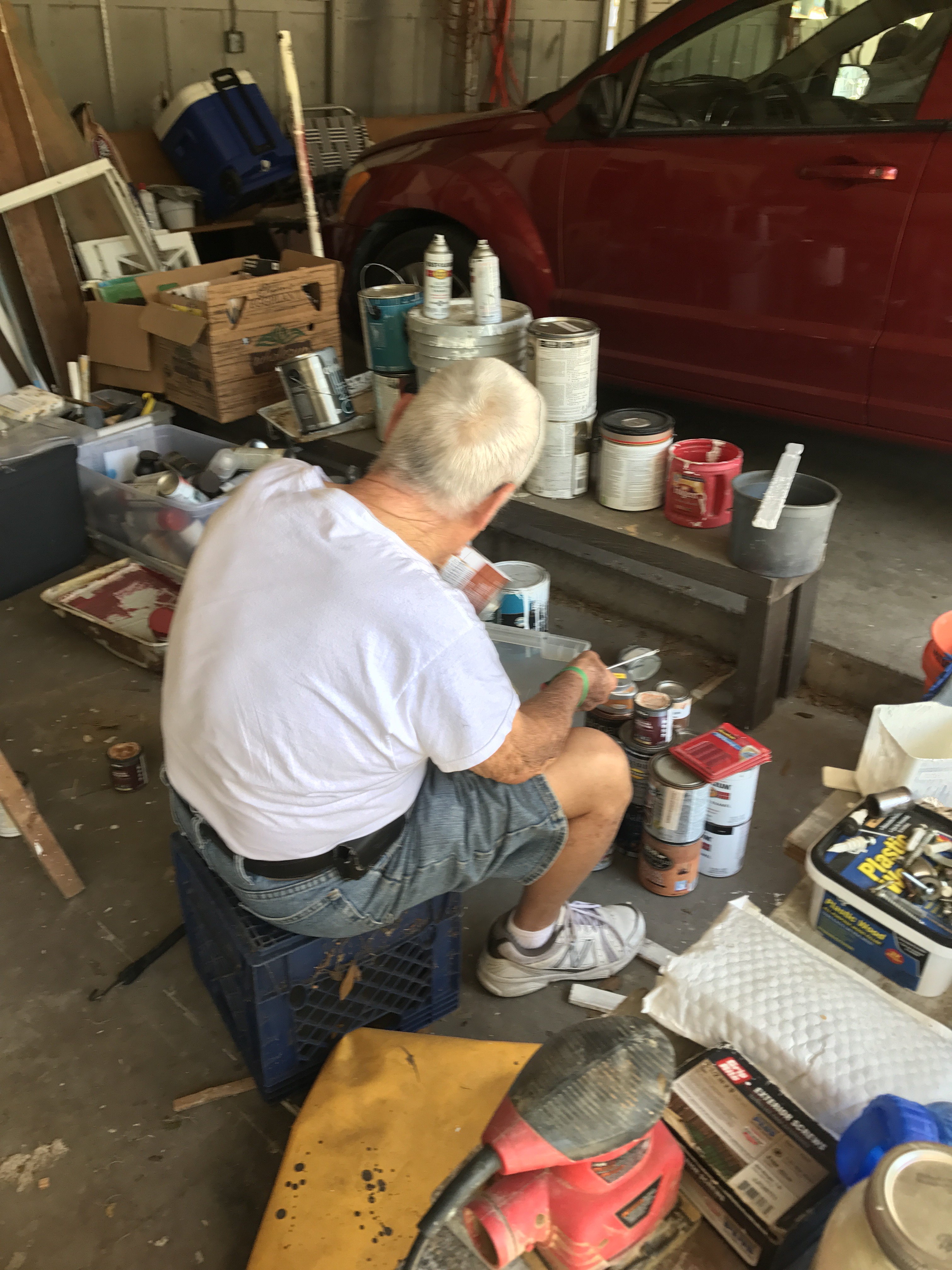 We started with paint. When dad doesn’t feel well but wants to be outside, you find something he can do sitting down.