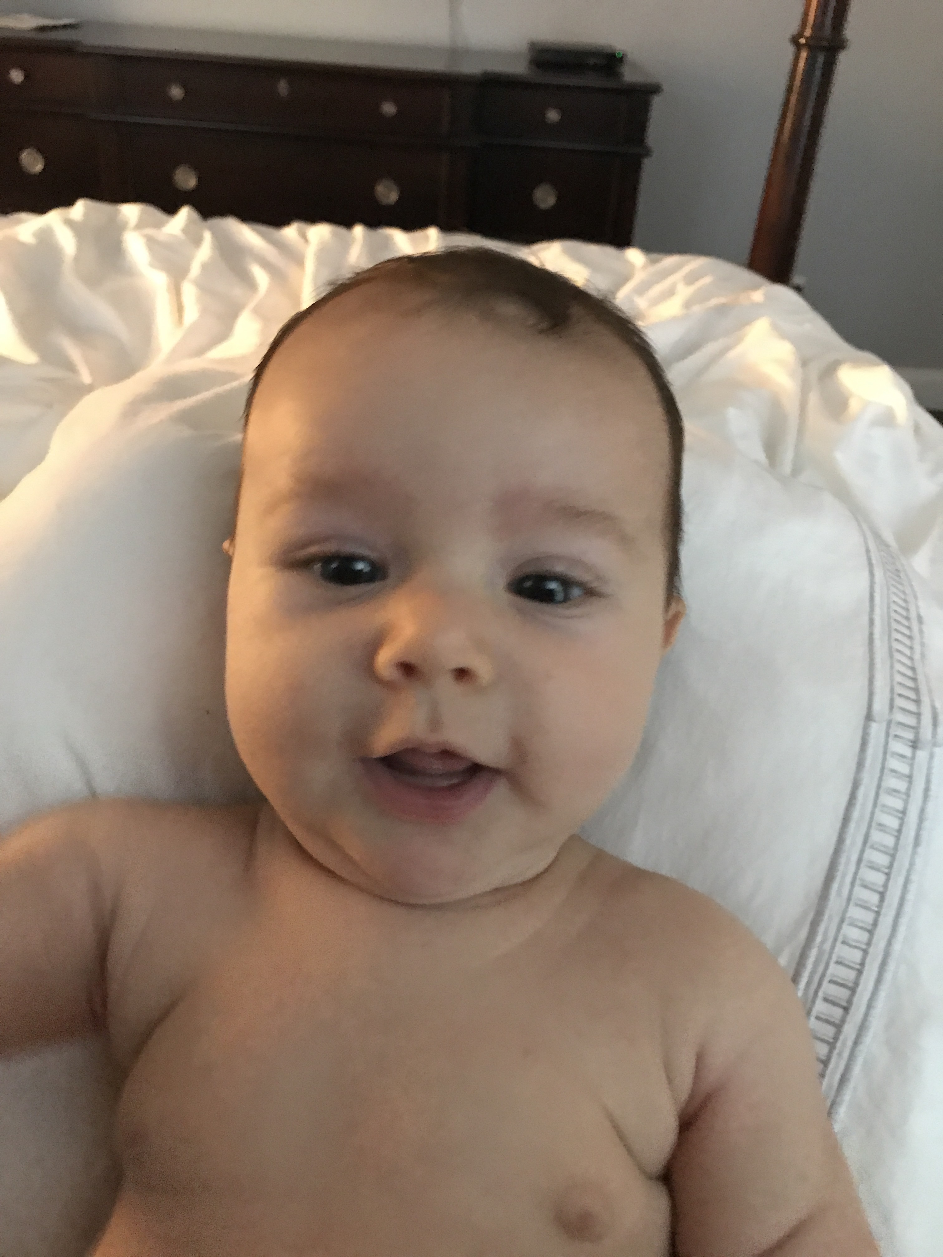 He is beginning to have quite the personality. He giggles and coos. He smiles with his whole face.