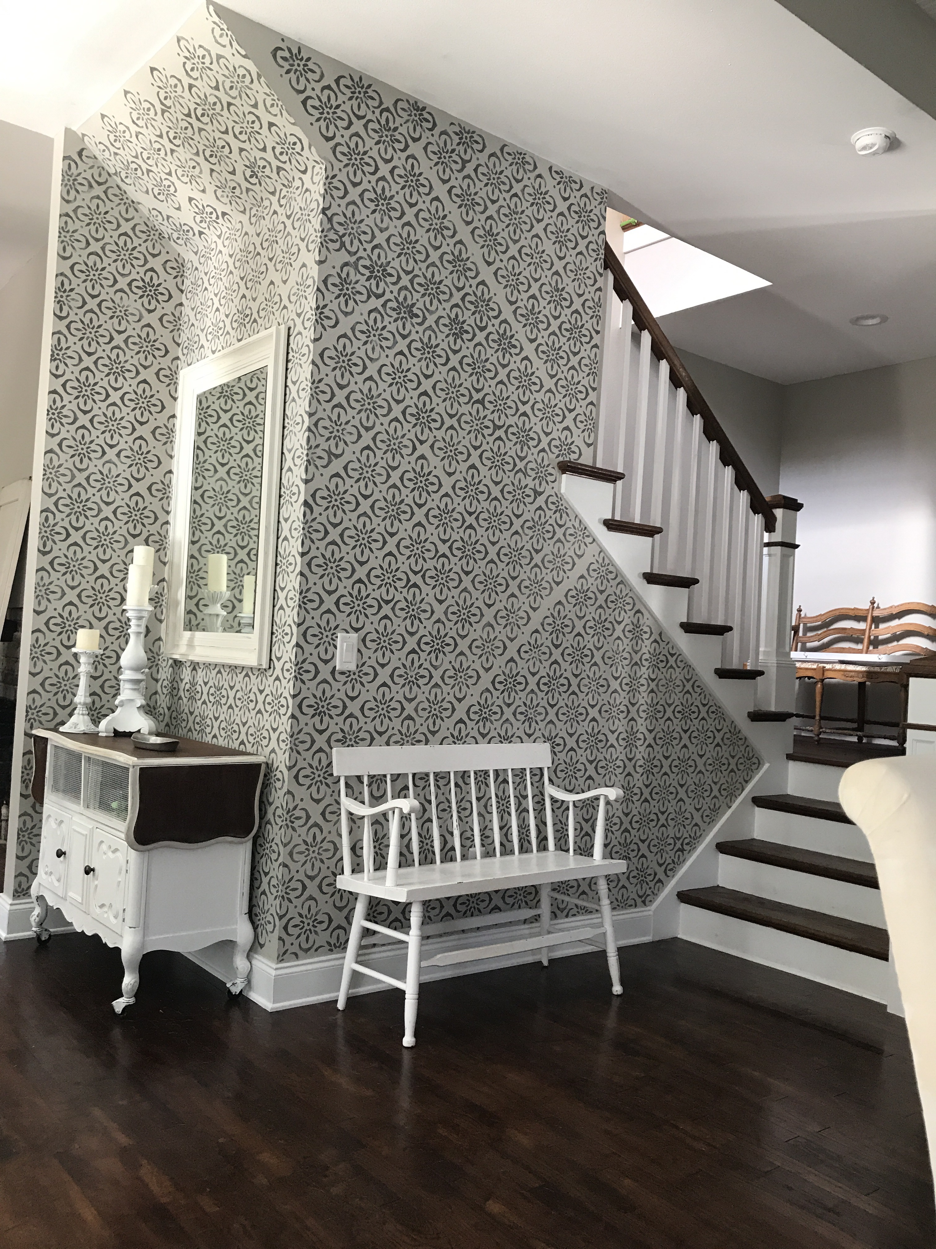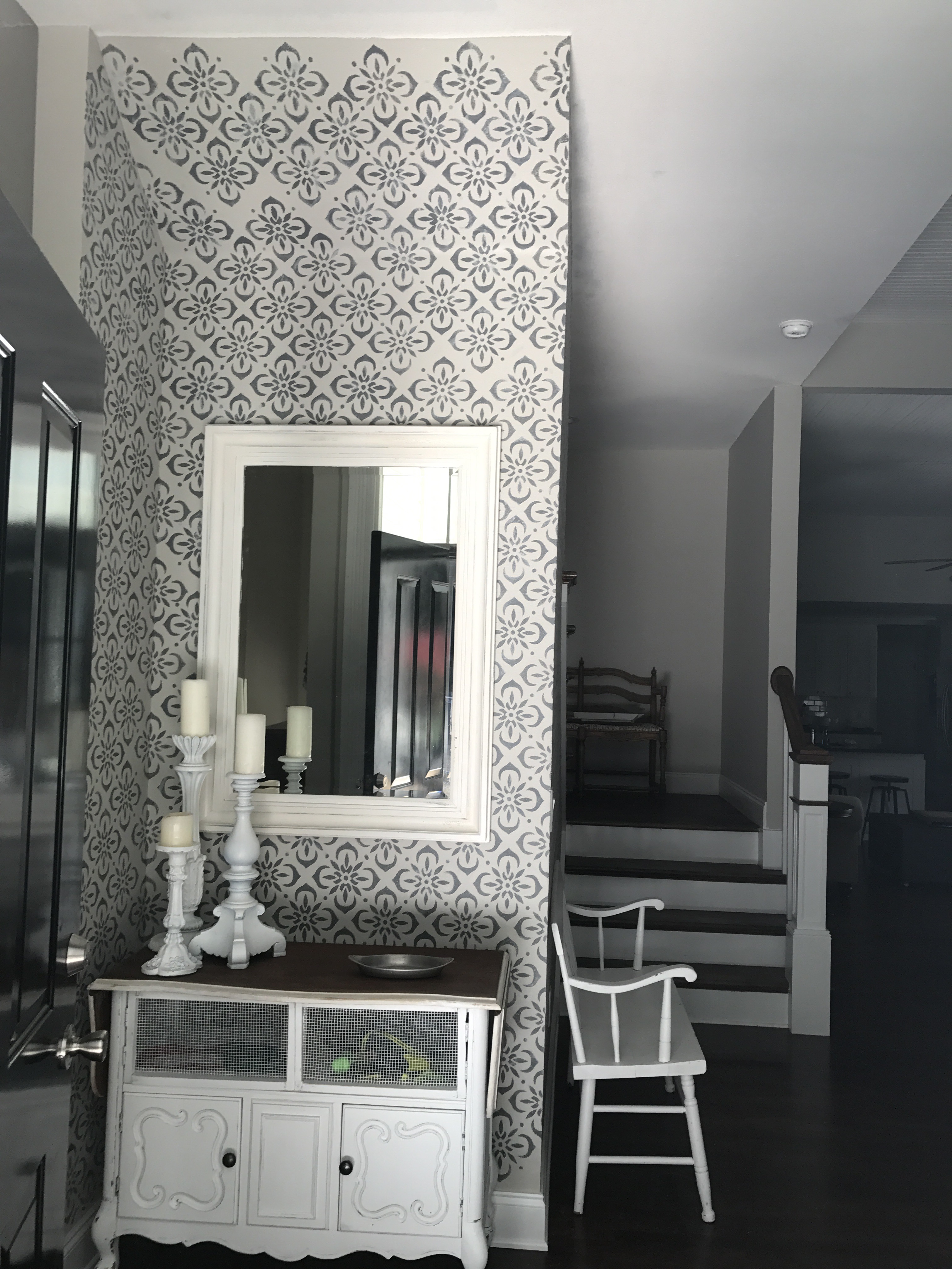 What stencil would look good on a front entry accent wall