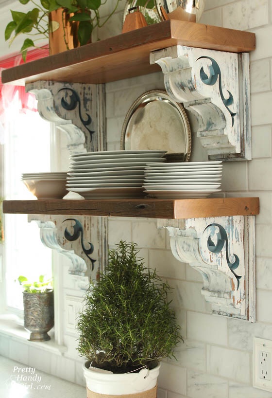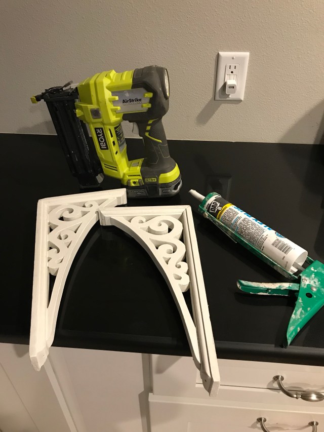 Let’s put the corbels, that are hiding in the garage, lost in the hoard. Between the end tables and the big metal letters………here!