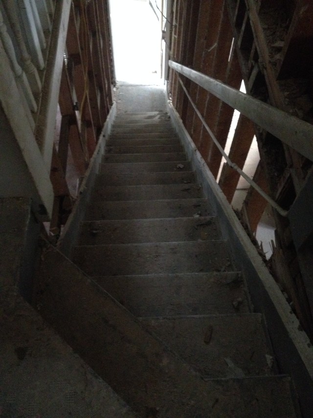 The old stairs were removed and reconfigured so that you did not have to enter the stairs as soon as you entered the front door.