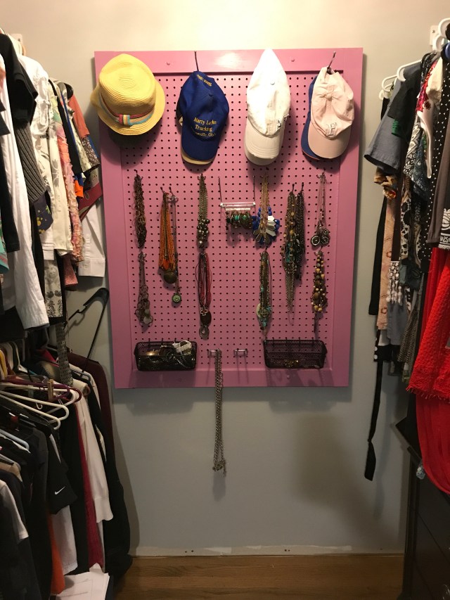 I’ve had an idea for a few months and a lovely piece of pegboard has been hiding in the rear of my closet.