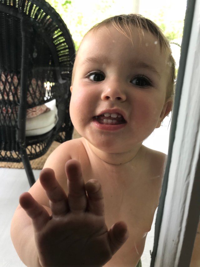 He immediately shows me his teeth because every time I pick him up he finds my teeth and we have to share teeth stories.