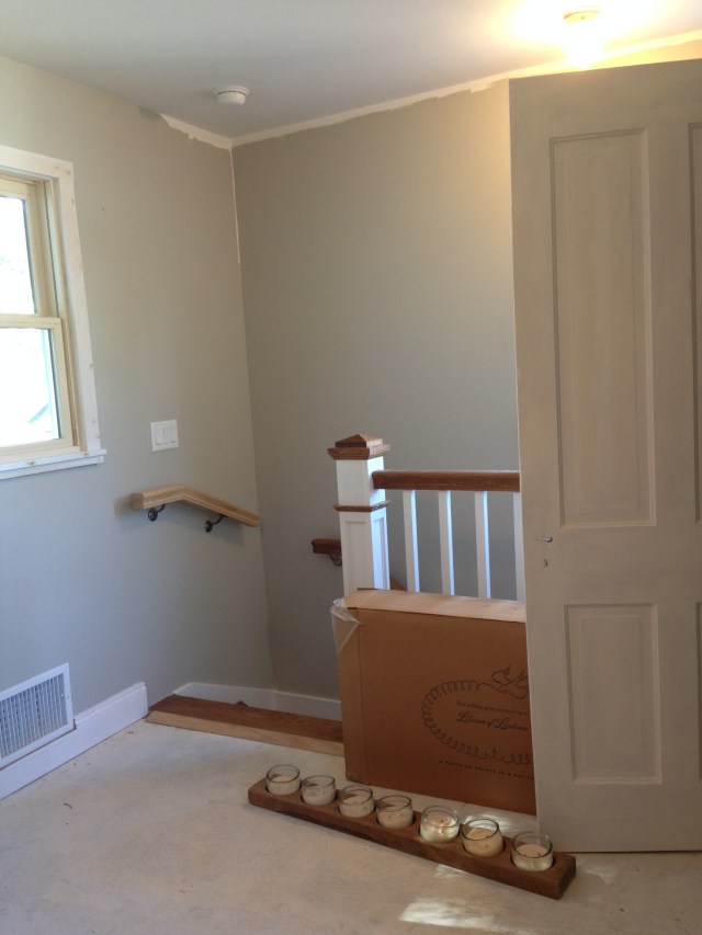 This room is more finished than any other room in the entire house. Sometimes I just go up and sit on the bed. This room is peaceful and lovely. Just lovely.