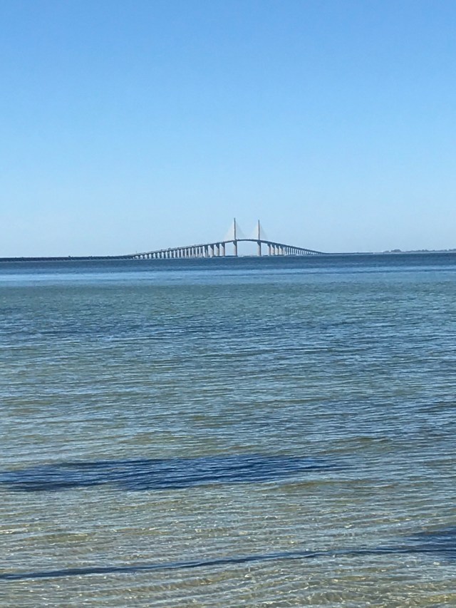 When life brings questions and concerns, as I look out into the ocean and see the Sunshine Skyway Bridge. The bridge that was struck by a barge on May 9th, 1989 at 7:33am. Though the blinding rain, drivers in the southbound lanes were unable to see the missing roadway ahead. Six cars, a truck, and a Greyhound Bus plunged into the waters below. One man survived. 35 others were killed. Today, this majestic bridge stands strong. It carries 1000’s of people everyday across from Palmetto to St. Petersburg. Growing up in Manatee County, I have driven across the original bridge as a teenager in a 1969 Volkswagen with a stick shift. The original bridge was a long flat span and then straight up. Scary as crap I say!!! The new bridge is more of a slant and it’s so beautiful.