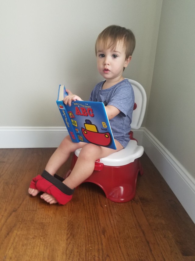 When you are almost two, learning to use the potty is a priority. Sometimes reading helps to pass the time