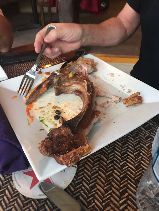 Steve’s dinner included a pork chop from The Flintstones and Becky spoke love to her ribeye. Obviously we were hungry .