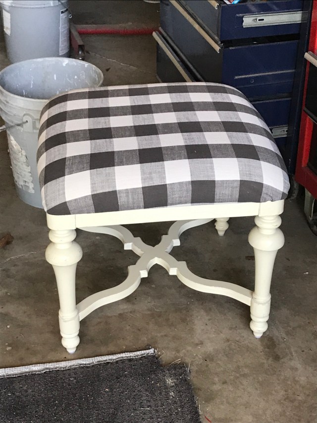 They needed a coat of paint and some farmhouse fabric. You know I’m all about white and some checkered fabric.