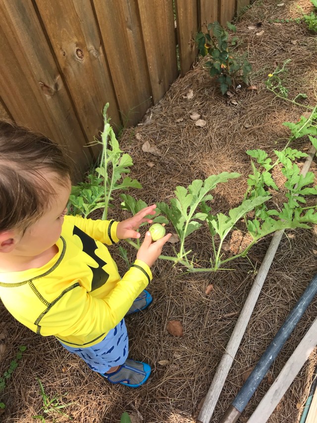 However one day, in the near future, we can pick this watermelon together. We will cut it, and serve it to the family. What an honor to teach this two where food comes from and that we grew it from a seed into what it is today. He might not get it, but one day he will.