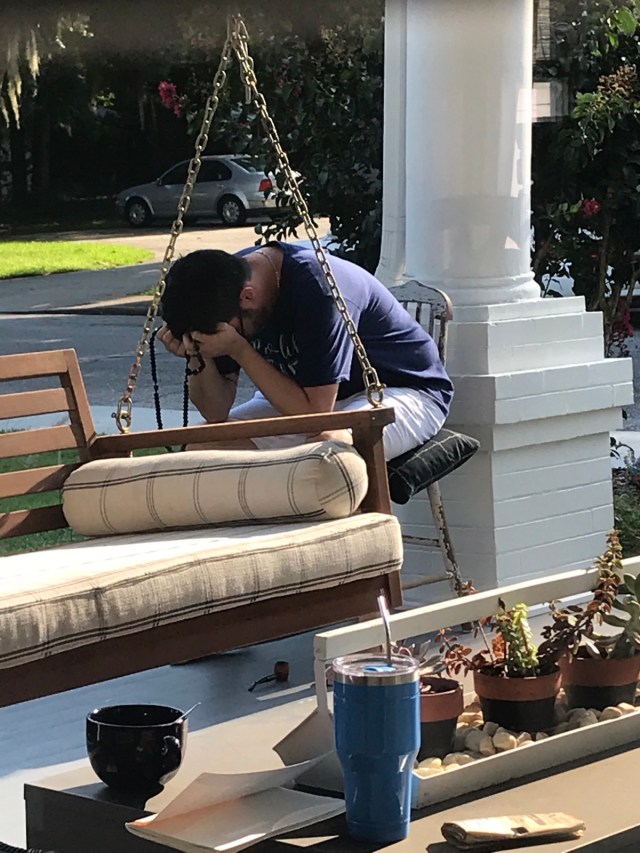 Real life is prayer. Watching our son on the porch this morning. Being so proud of the husband and father he is and relying on the Father to guide his steps.