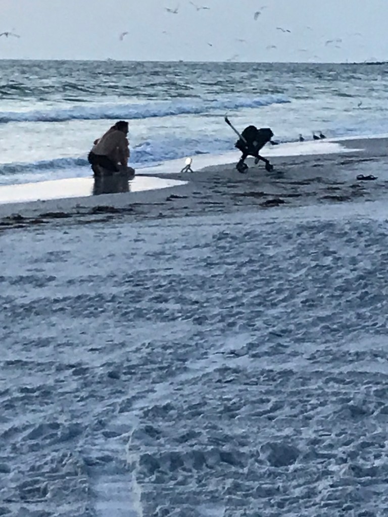 This small family positioned themselves just right with the waves to their rear. They had a baby that they were obviously very proud of. They picked the perfect setting to have memories with their sweet family. COVID can not take that away.