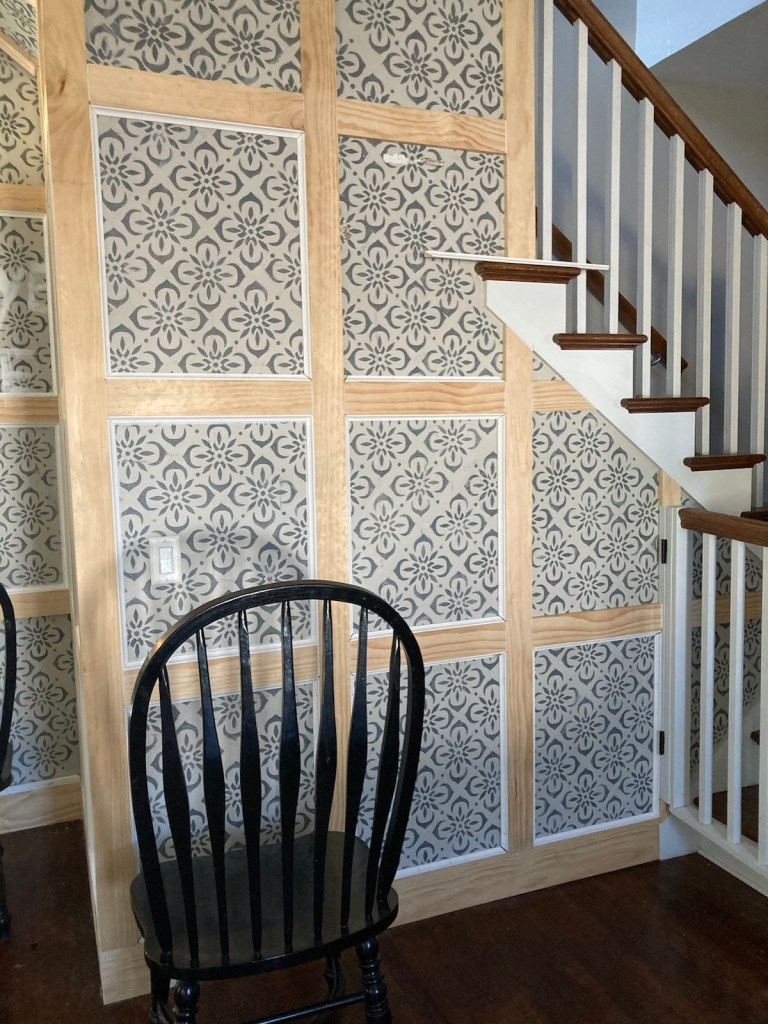 I stenciled this wall a few years ago (2017) and while I loved it…….. I get the itch to switch. I crave change and most of the time, I spend little money on things so it doesn’t feel like a waste when I’m ready for a change.