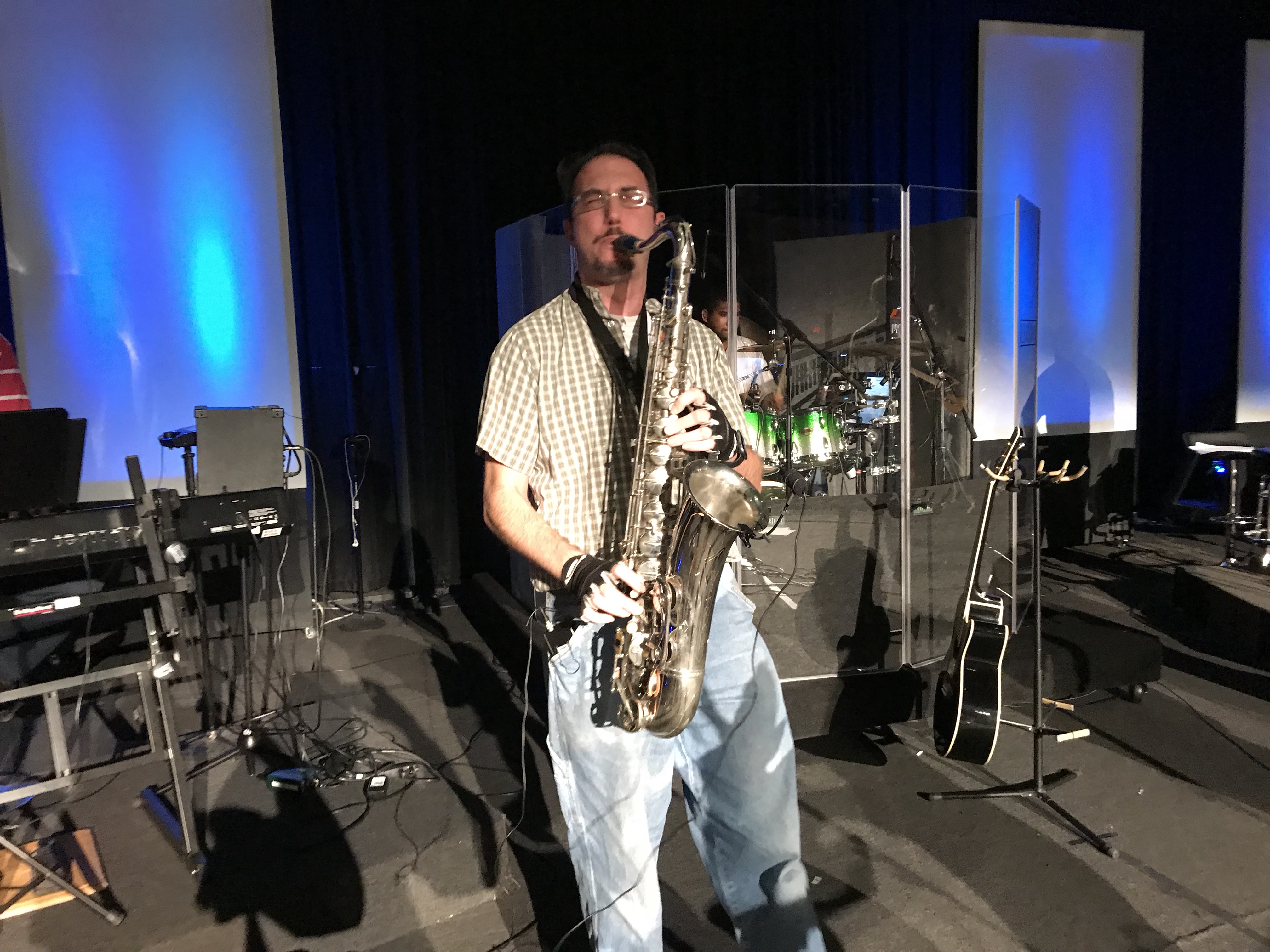 Our pastor comes in during rehearsal and he was so excited! He mentioned that the current state of electricity could not have been planned any better.